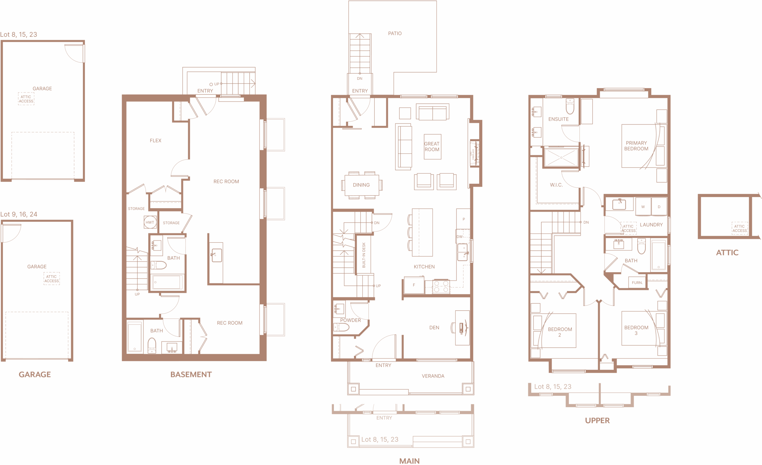Explore four versatile 3-bedroom, 3.5-bathroom layouts with flex spaces and dens, or the exclusive 6-bedroom, 6-bathroom residence. Each offers flexibility, functionality, and elegance—find the one that feels like home.